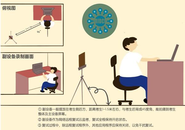 6.2.3.副设备一般摆放在考生侧后方,距离考生1-1.5米左右,与考生后背成45度角,能拍摄到考生整体及主设备屏幕。