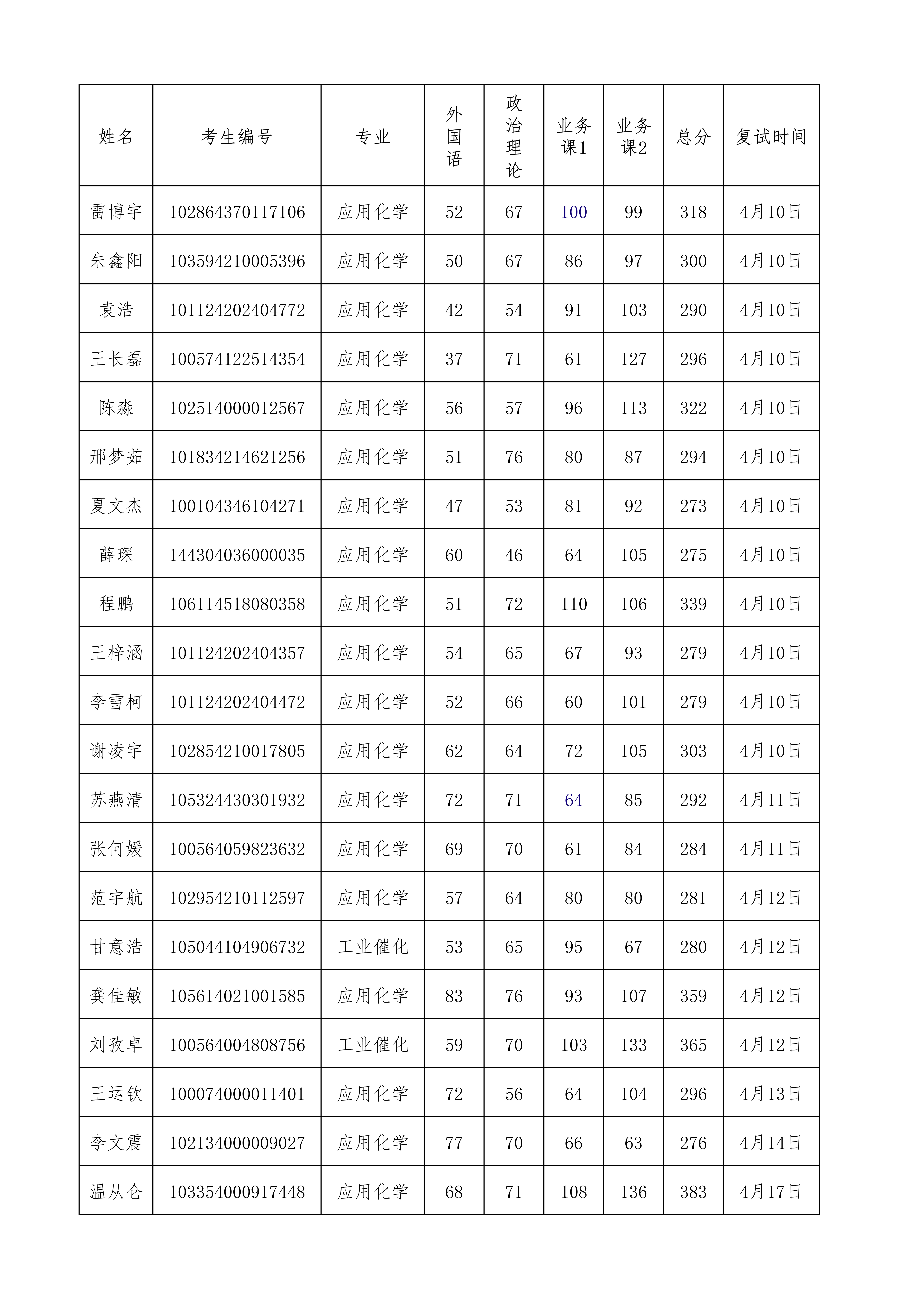 中国日用化学工业研究院2024年硕士研究生招生调剂复试学生名单
