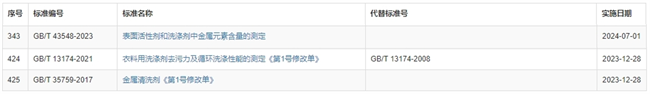 同批发布实施的还有GB/T 13174-2021《衣料用洗涤剂去污力及循环洗涤性能的测定<第1号修改单>》和GB/T 35759-2017《金属清洗剂<第1号修改单>》。修改单的发布完善了标准文本,消除了使用标准过程中的歧义,为相应产品的质量检测提供更加可靠的技术支撑。