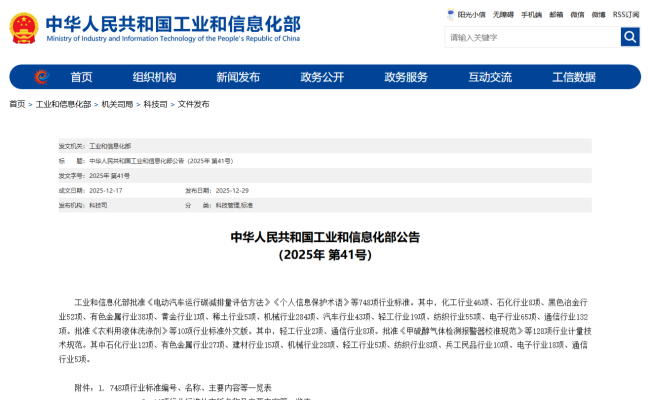 2025年12月29日,国家工业和信息化部发布2025年第41号公告,批准发布748项行业标准,其中由全国表面活性剂和洗涤用品标准化技术委员会(SAC/TC272)归口管理的QB/T 1224-2012《衣料用液体洗涤剂》(Liquid detergent for fabric)外文版标准获批发布。